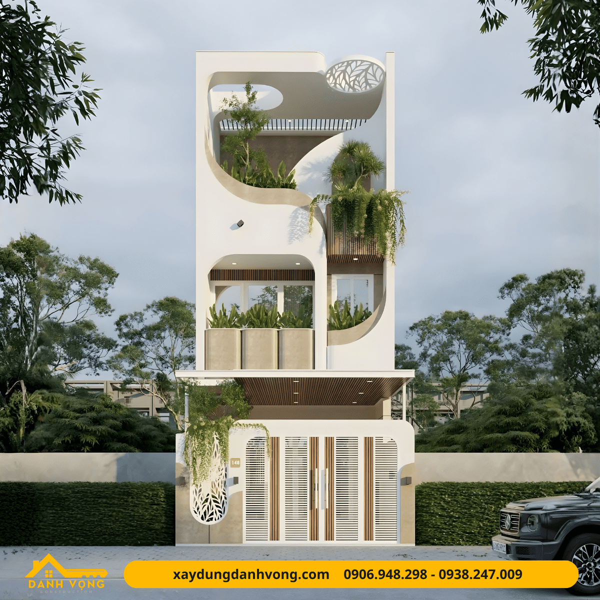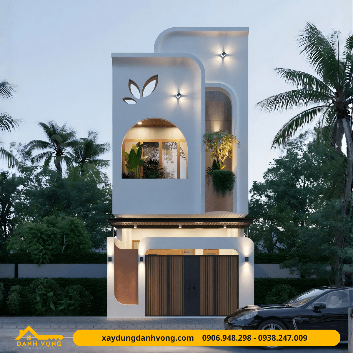 Nhà Phố Hiện Đại 5×25 – Mặt Tiền Vòm Cong, Ánh Sáng Ấm