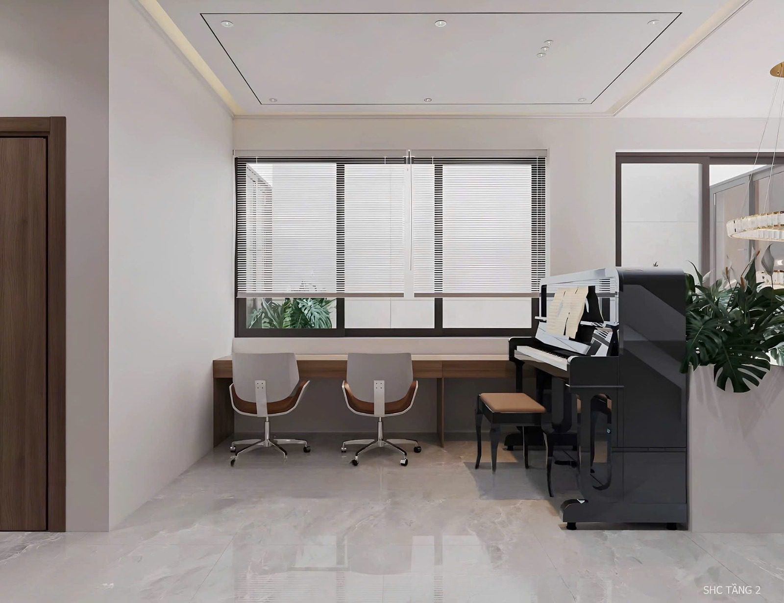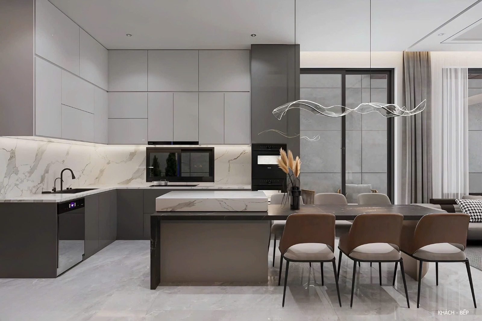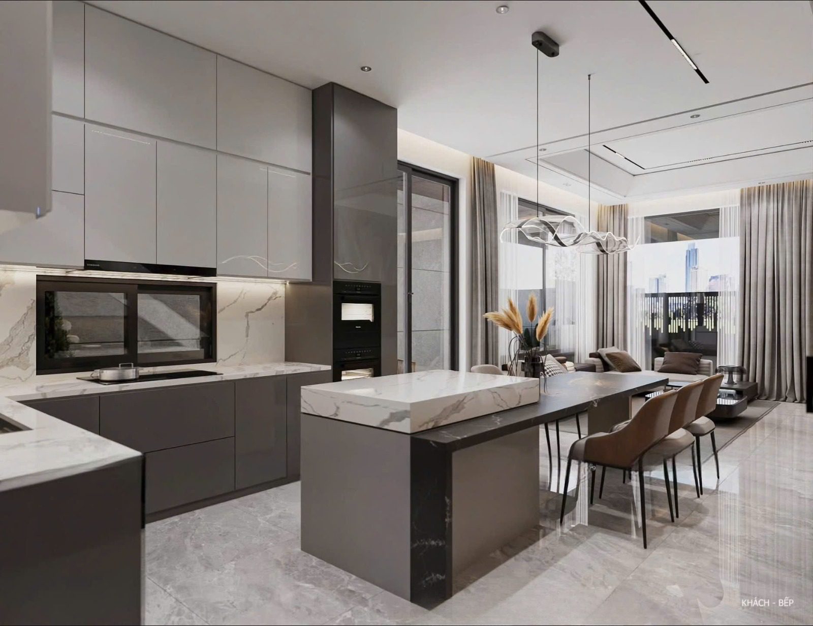 Tổng thể khu sinh hoạt chung được thiết kế theo trục mở – liên thông – ít vách ngăn, giúp không gian luôn thoáng và rộng hơn diện tích thực.