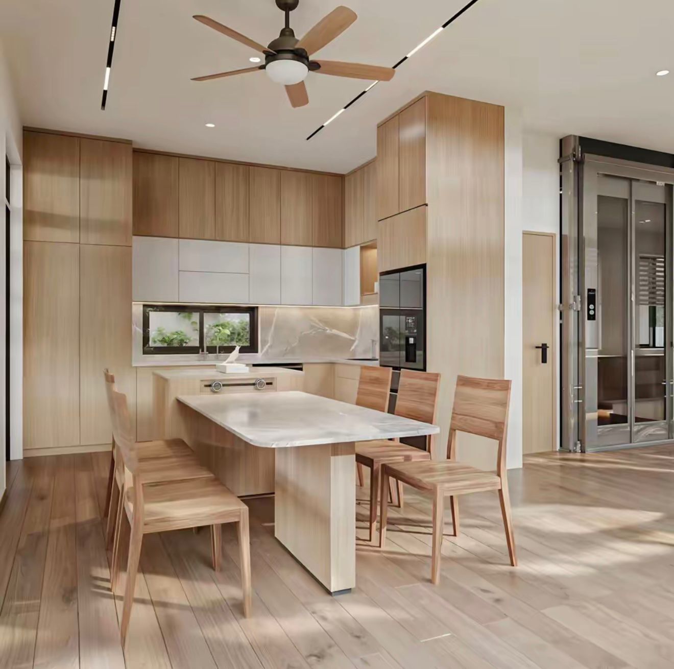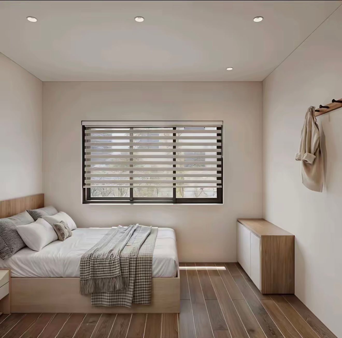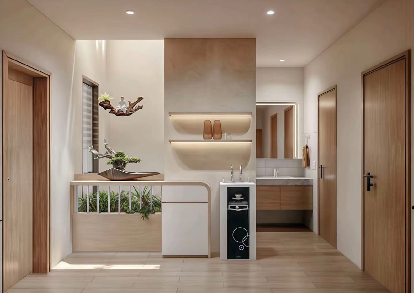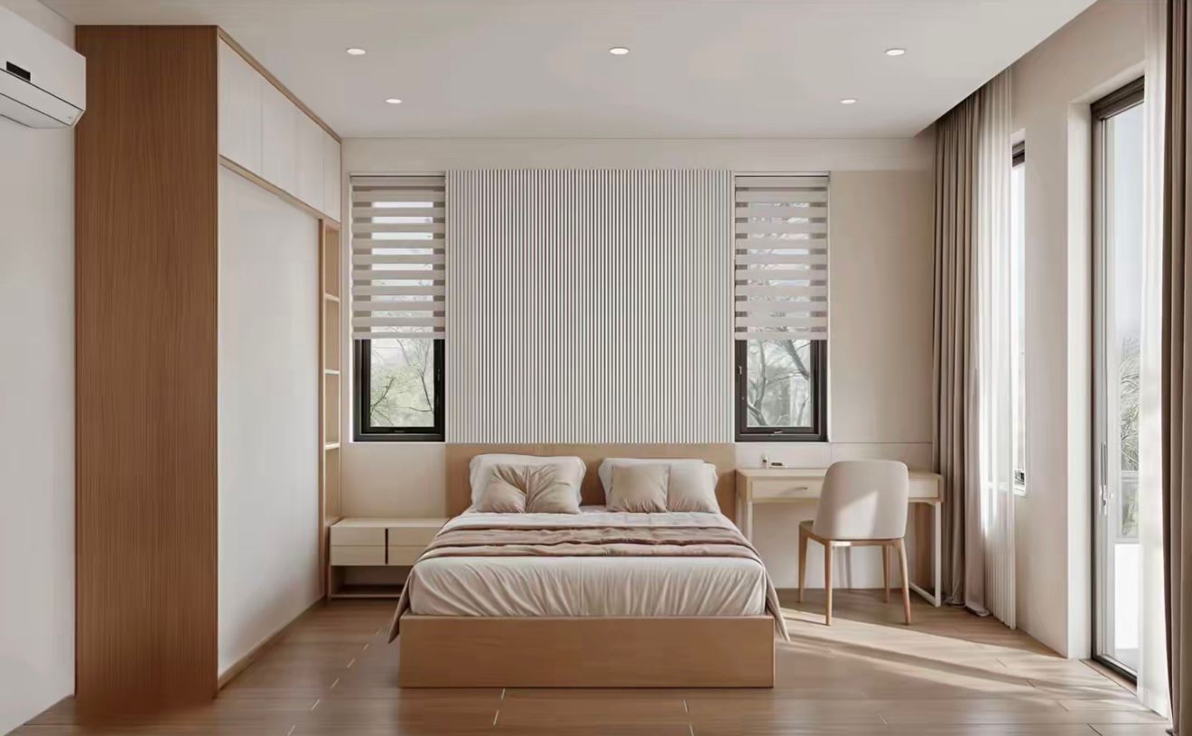 Tone gỗ sáng + trắng → ấm và nhẹ