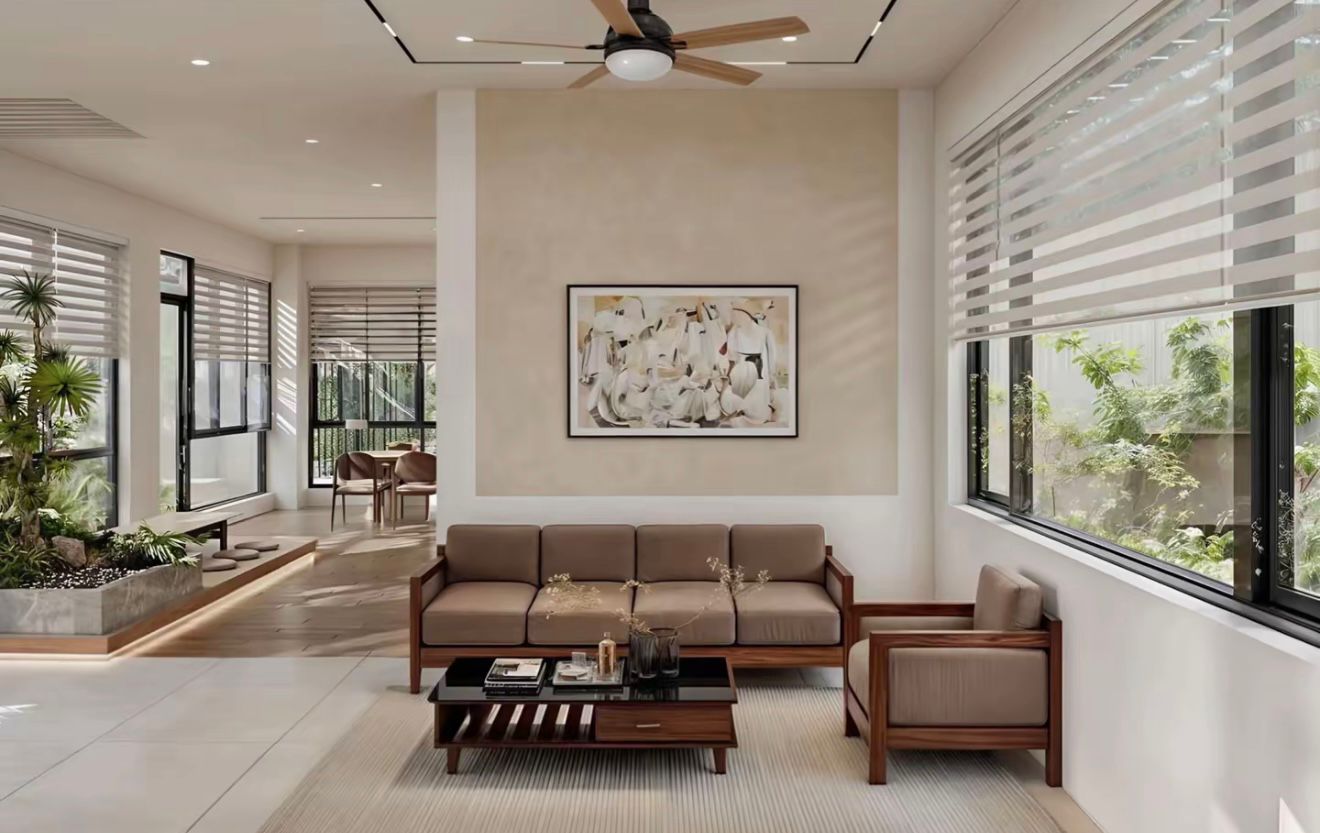 Bố trí sofa gọn, tông trung tính → sang mà không nặng nề