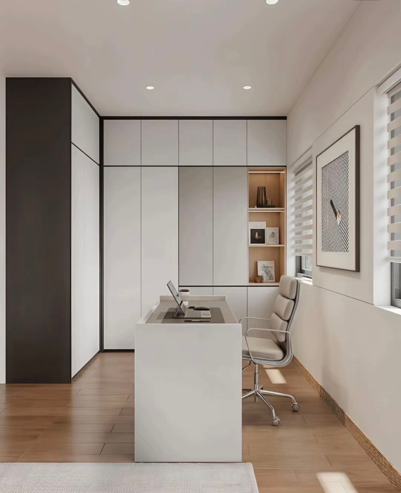 Bố trí bàn làm việc, tủ áo âm tường gọn gàng