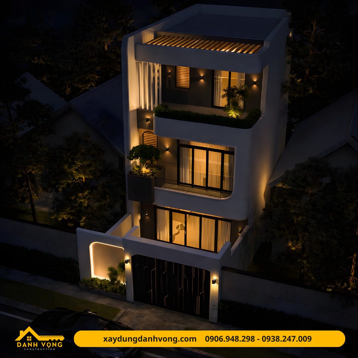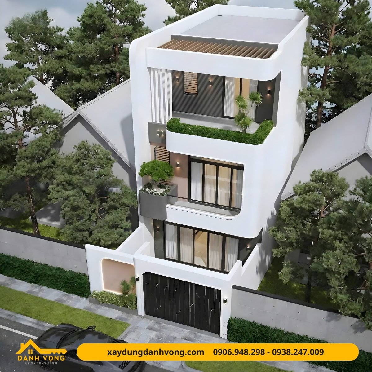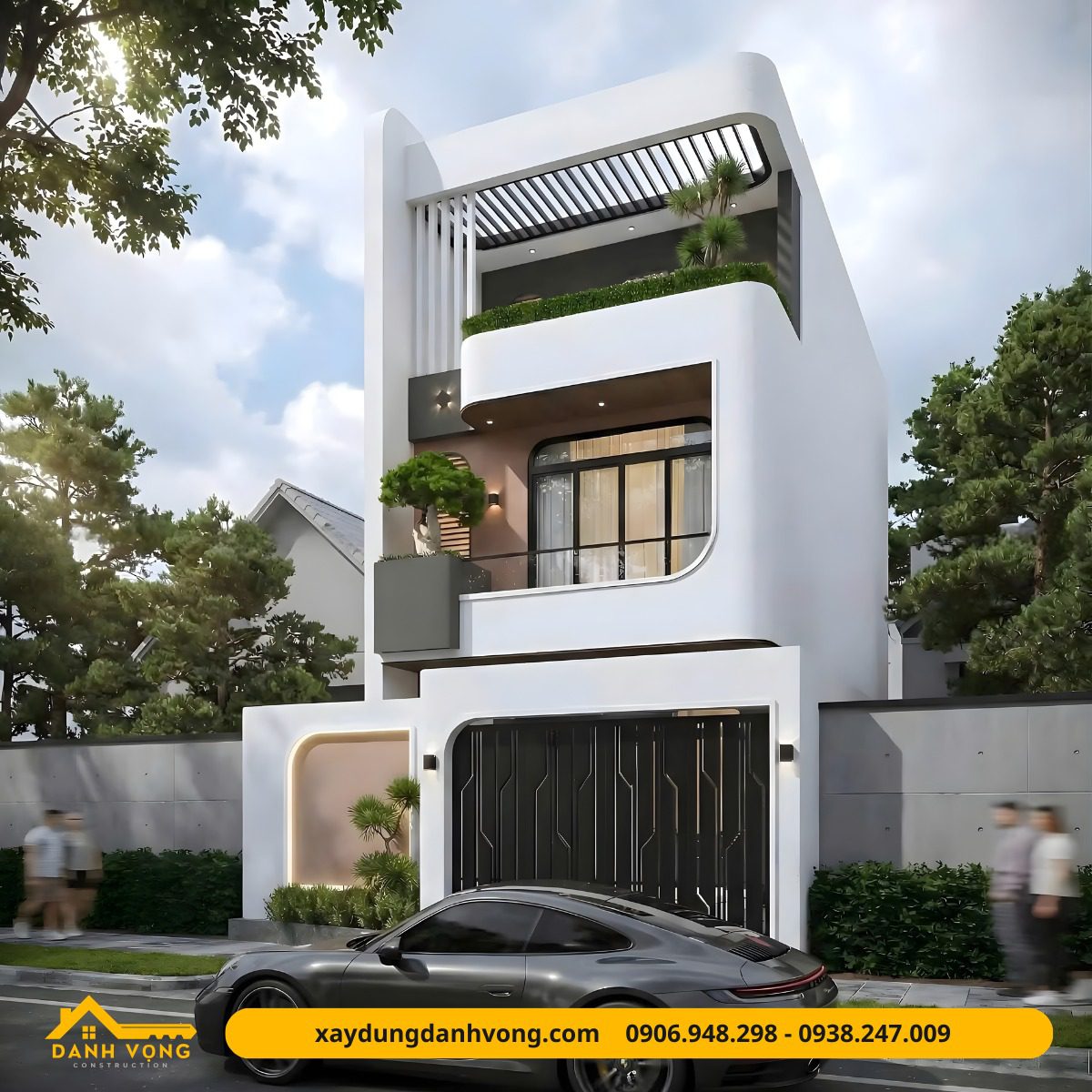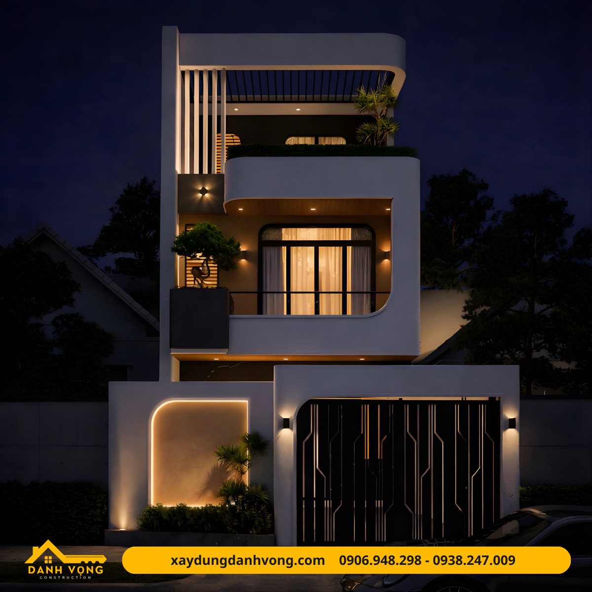 Mặt tiền hiện đại, hình khối rõ ràng – bo cong tinh tế