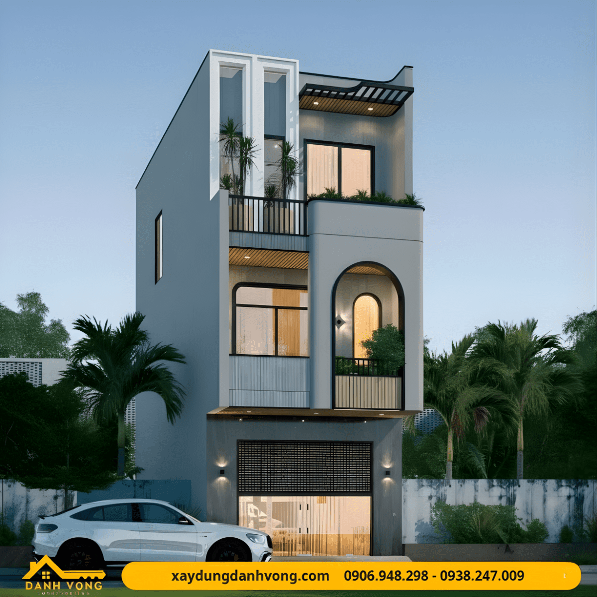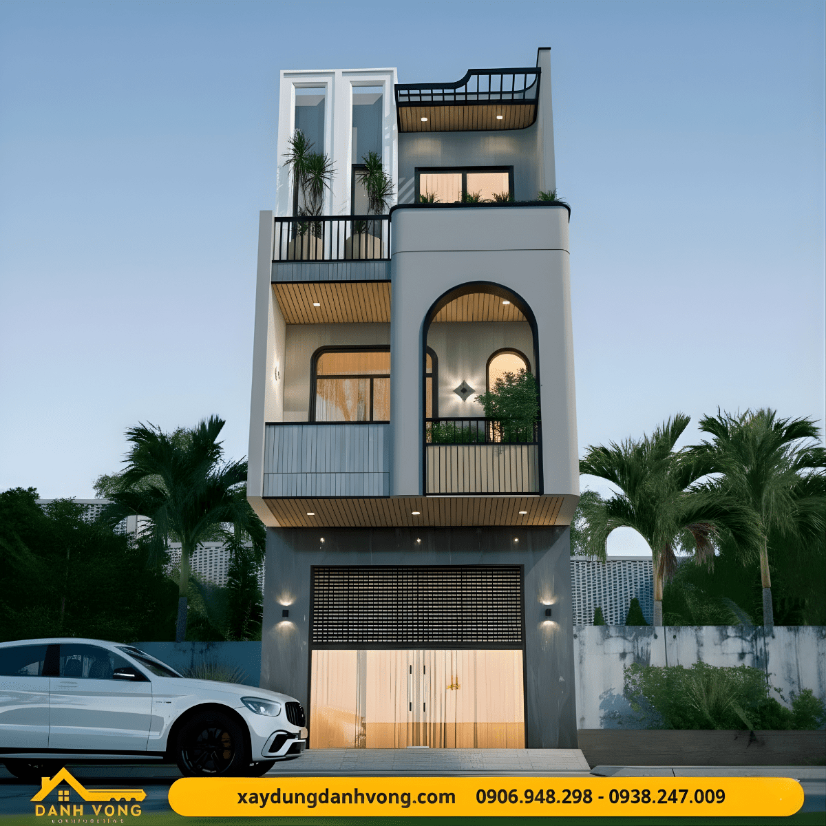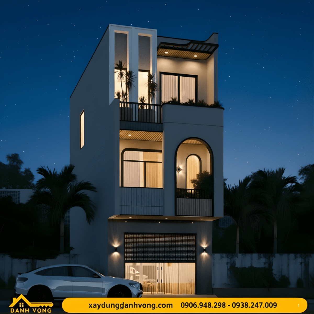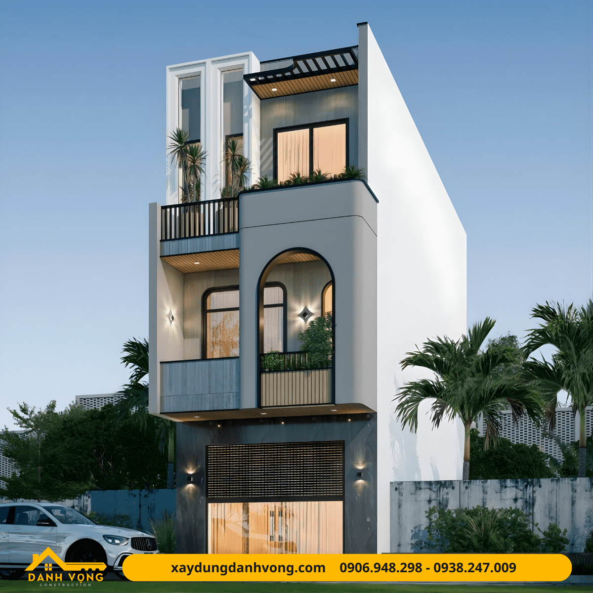 Mẫu nhà phố 3 tầng 6 × 15m là sự kết hợp hài hòa giữa kiến trúc hiện đại – điểm nhấn vòm cong – mảng xanh tinh tế, mang đến một không gian sống vừa thẩm mỹ, vừa tiện nghi, đồng thời khẳng định gu thẩm mỹ riêng của gia chủ.