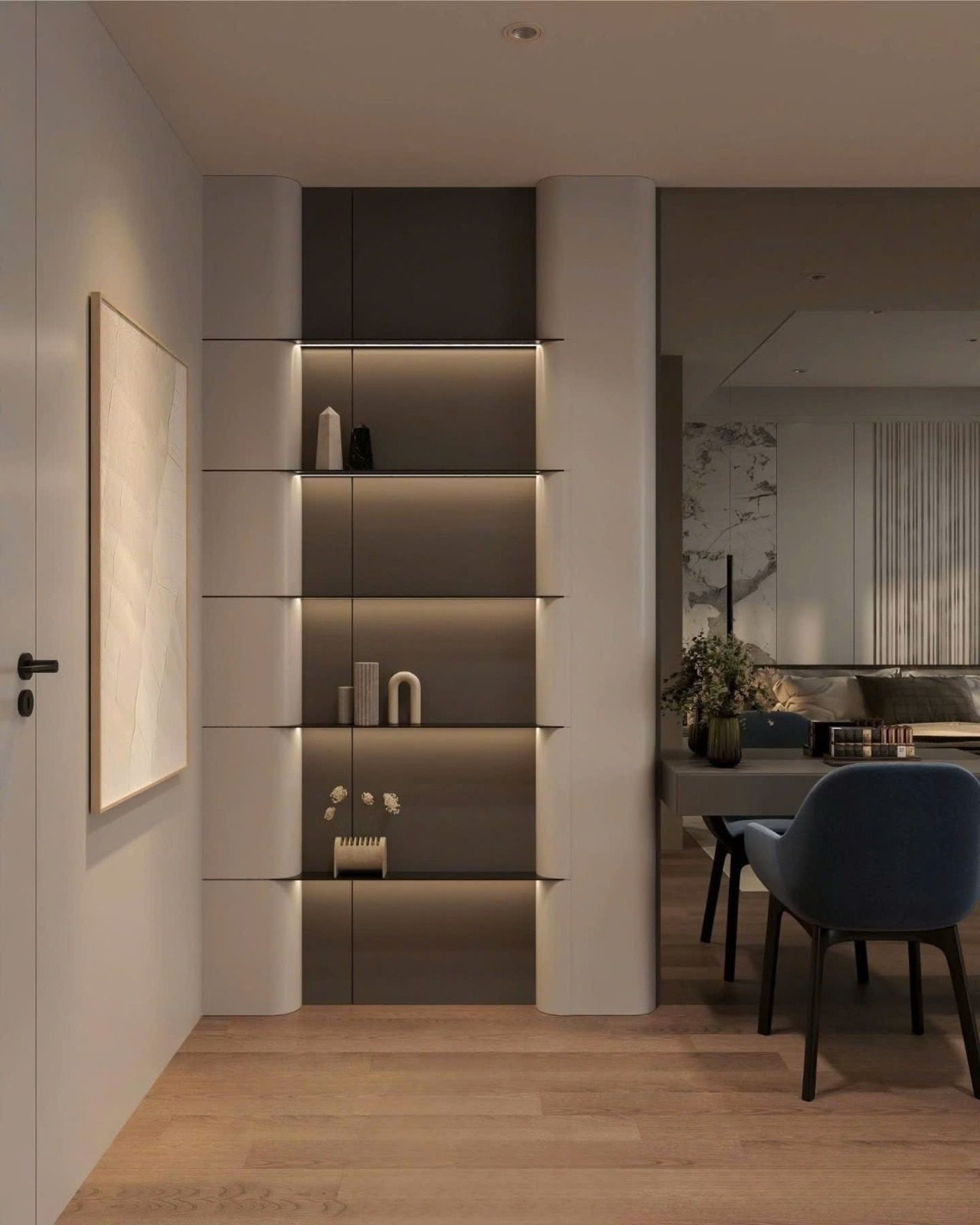 Hệ kệ âm tường bo tròn, giảm góc cạnh – an toàn khi sử dụng
