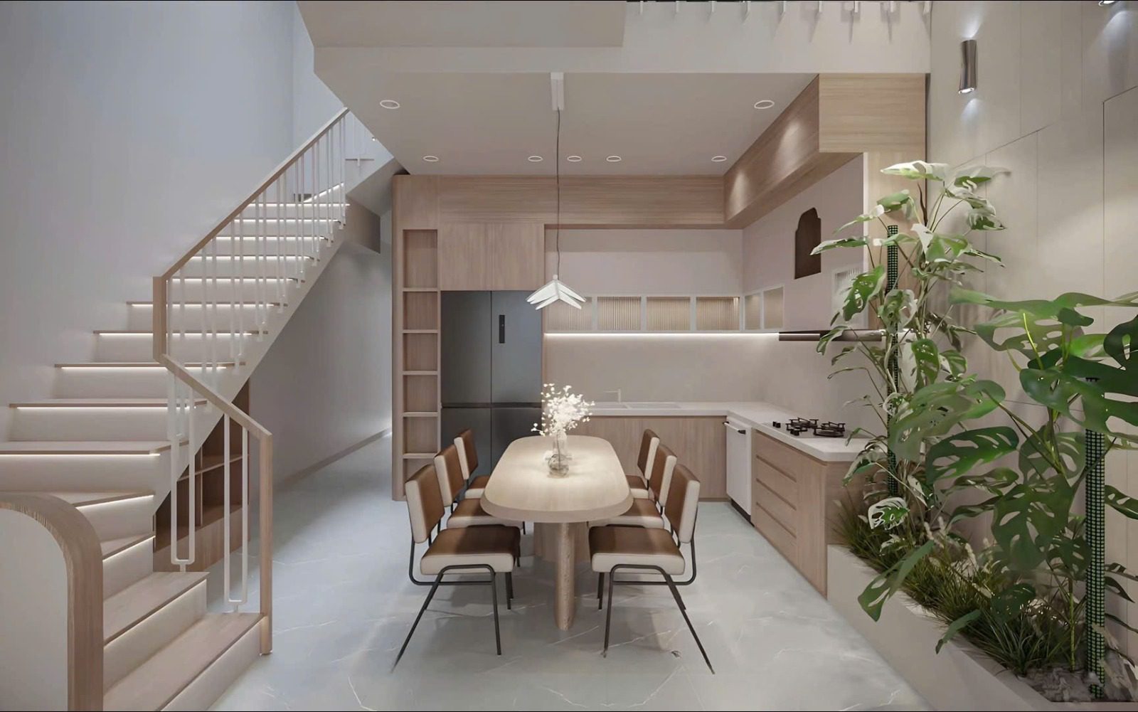 Trong nhịp sống đô thị ngày càng gấp gáp, một ngôi nhà không chỉ cần đẹp mà còn phải đủ yên. Dự án nội thất nhà phố 5x25m – 2 tầng này được thiết kế theo tinh thần hiện đại tối giản, lấy màu trắng và gỗ sáng làm chủ đạo, tạo nên một không gian sống mở – thoáng – dịu, nơi ánh sáng, cây xanh và con người hòa vào nhau một cách tự nhiên.