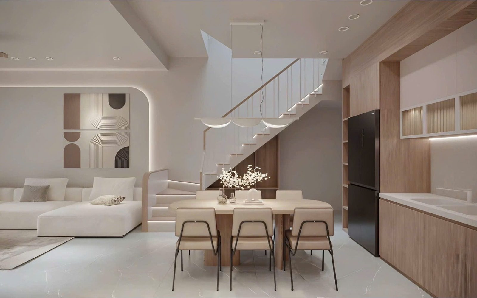 Nội Thất Nhà Phố Màu Trắng – Gỗ Sáng, Không Gian Mở