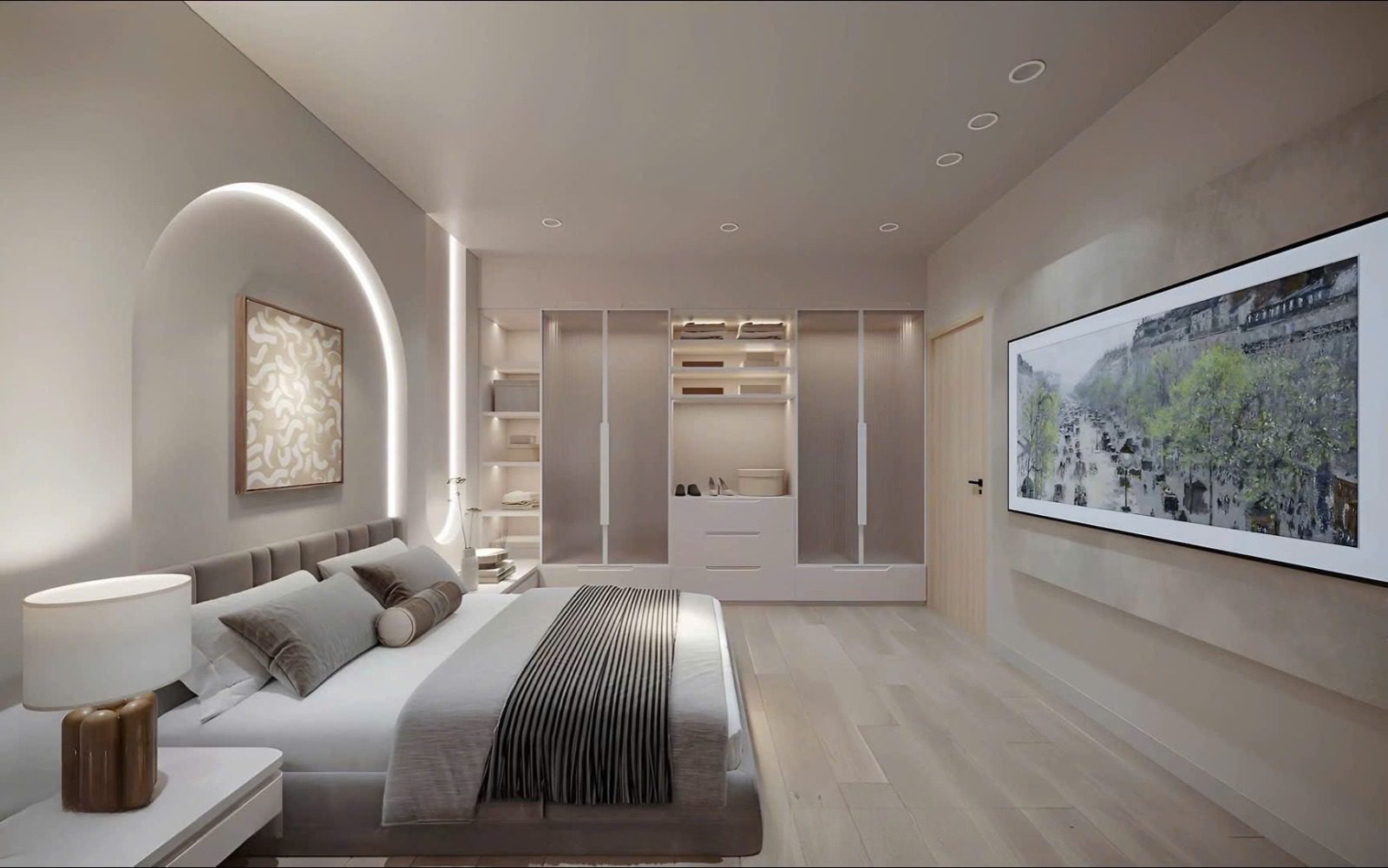 Không gian phòng ngủ không phô trương, nhưng đủ tinh tế để mang lại cảm giác an toàn và riêng tư.