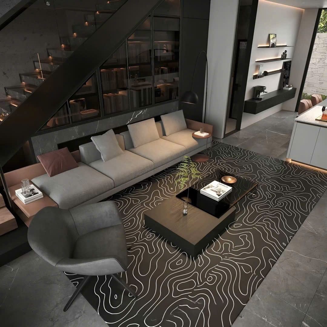 • Thảm họa tiết mềm đặt trung tâm phòng khách