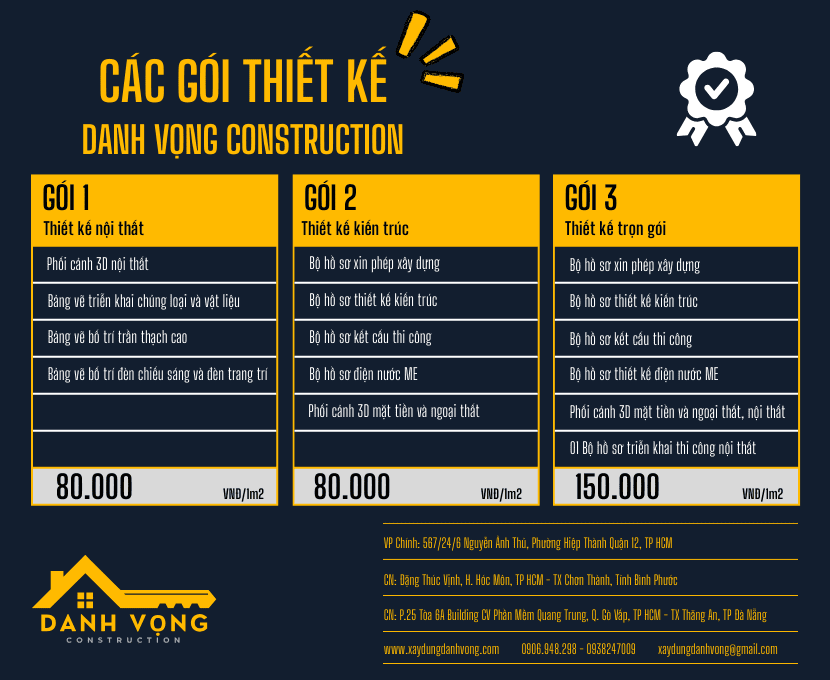 XD Danh Vọng là công ty thiết kế – xây dựng nhà phố, biệt thự, căn hộ chung cư, tòa nhà văn phòng với các dịch vụ thiết kế kiến trúc, thiết kế thi công nội thất, xây nhà phần thô, xây nhà hoàn thiện và xây nhà trọn gói có trụ sở chính tại 567/24/6 Nguyễn Ảnh Thủ, Phường Hiệp Thành, Quận 12, TP Hồ Chí Minh. Trong đó, dịch vụ thiết kế thi công nội thất được khách hàng lựa chọn và đồng hành bởi: